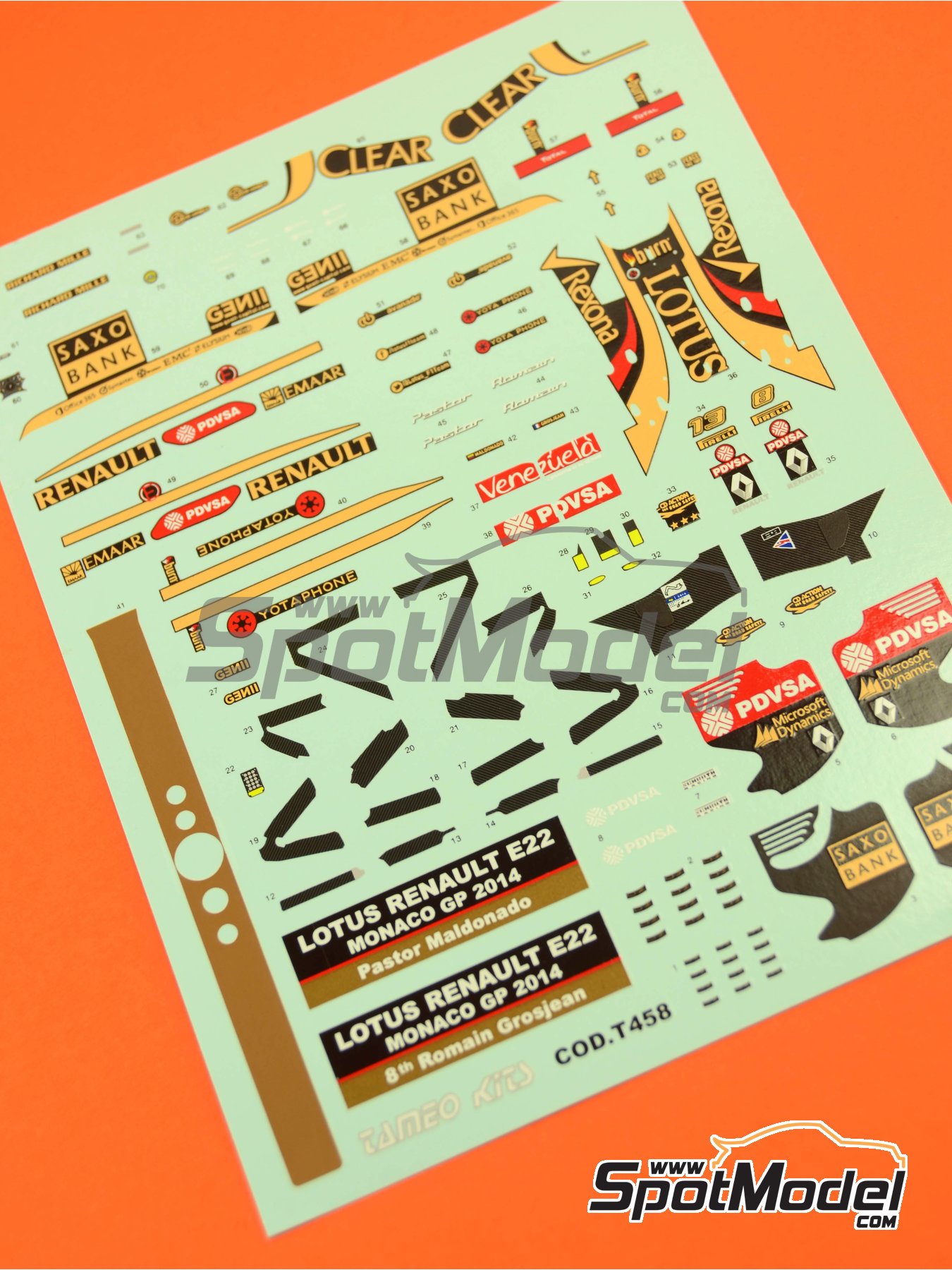 The spectacular car that Grosjean drove to the eight position at 2014 Monaco GP have been chosen by Tameo to recreate in 1/43 scale. If you need them, here are at your disposal these great decals printed by Cartograf exactly the same as the ones served by Tameo with the kit. Remember to use Zero Paints Lotus Black to get a perfect finish for your kit.