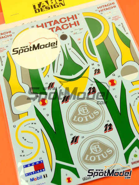 Usando como base el Lotus 107B de Tamiya y éstas calcas de Tabu, puedes recrear la versión 107C del mundial del año 94. La hoja incluye todos los logotipos necesarios para decorar con el dorsal 11 y 12.