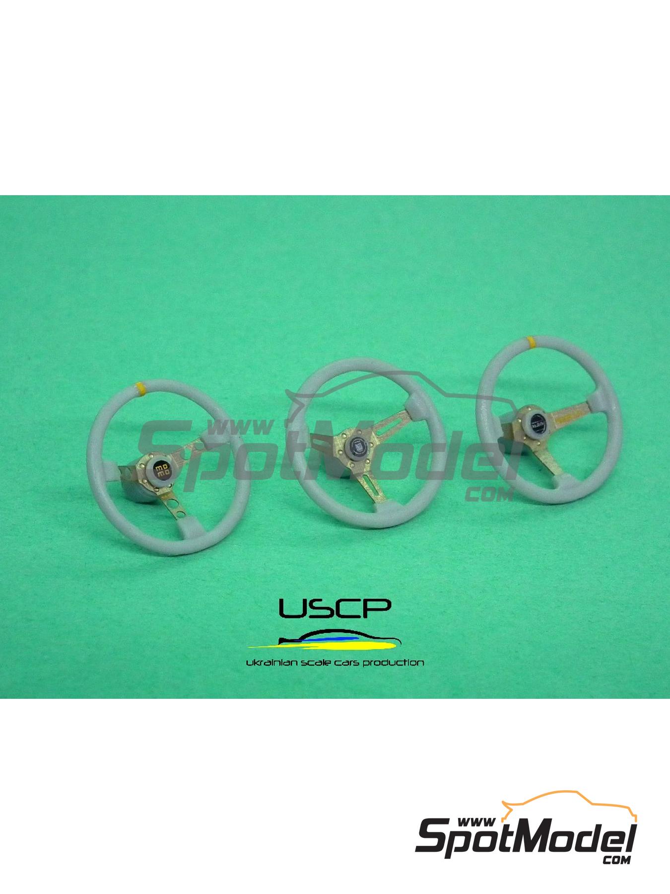 tres volantes deportivos diferentes, que podemos encontrar en muchos coches de competición. El diseño final del volante irá en función de la parte central que escojas de la plancha de fotograbados. La atención al detalle es espectacular, como lo demuestra que una de las piezas para montar sea el
