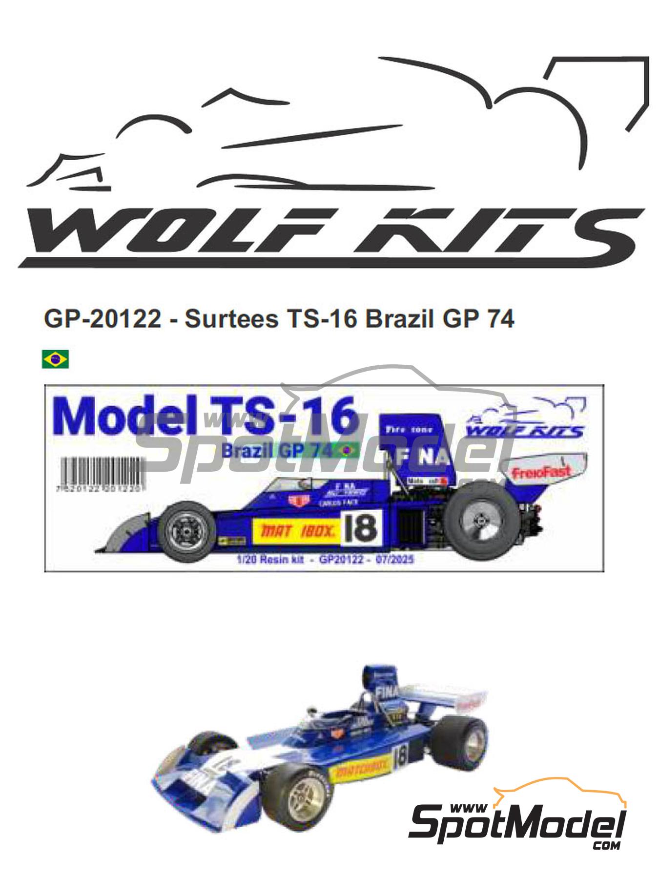 Esta maqueta permite reproducir cualquiera de las dos unidades del Surtees Ford TS16 que compitieron en el Gran Premio de Fórmula 1 de Brasil de 1974, celebrado en el circuito de Interlagos. Los aficionados brasileños no solo disfrutaron de la victoria del héroe local Emerson Fittipaldi a bordo de su McLaren, sino que también gozaron con la remontada de Carlos Pace, que a bordo de su modesto Surtees (dorsal #18) fue capaz de pasar de la decimosegunda posición en parrilla hasta la cuarta posición final. El otro piloto del Surtees, Jochen Mass (dorsal #19) no tuvo tanta suerte, siendo el último piloto que logró cruzar la línea de llegada en decimoséptimo lugar a dos vueltas del ganador. La maqueta incluye la