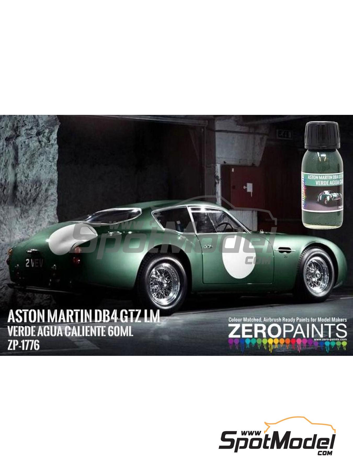 Tono verde formulado por Zero Paints similar al empleado en el Aston Martin DB4 GTZ LM. Esta referencia se sirve en formato de 60ml. Pintura para aplicar exclusivamente con aerógrafo.