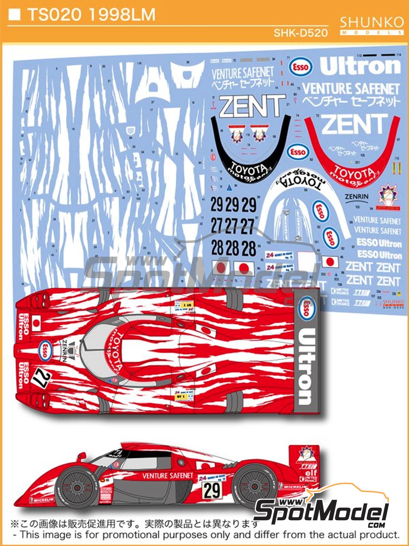 Shunko Models has updated its decal set for the Tamiya Toyota TS020 model, but has reduced the number of decals included compared to the SHK-D010 reference. This new reference will allow you to choose only from