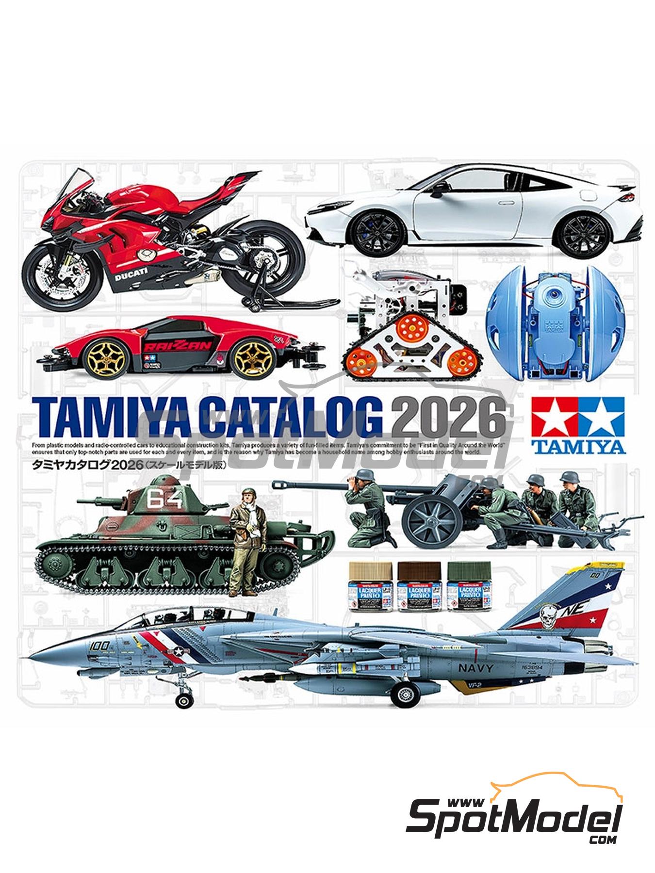 La llegada del nuevo catálogo de Tamiya por Navidad es ya toda una tradición, y ya tenemos aquí la edición de 2026. En el podrás ver todas las novedades incorporadas a lo largo de 2025, como el Honda Prelude (BF1) a escala 1/24 que se lanzó simultáneamente con el modelo real, o la Ducati Superleggera V4 con kit de competición. Pero lo que hace del catálogo algo tan interesante es que también aparecen los modelos y novedades del resto de modalidades, todo ello acompañado de una gran cantidad de fotografías. El catálogo también está repleto de información útil sobre pinturas y herramientas, incluyendo una tabla de compatibilidad de los colores de Tamiya. El catálogo cuenta con un total de 93 páginas con fotos a todo color sobre un papel de alta calidad, con textos en inglés, alemán, francés y castellano.