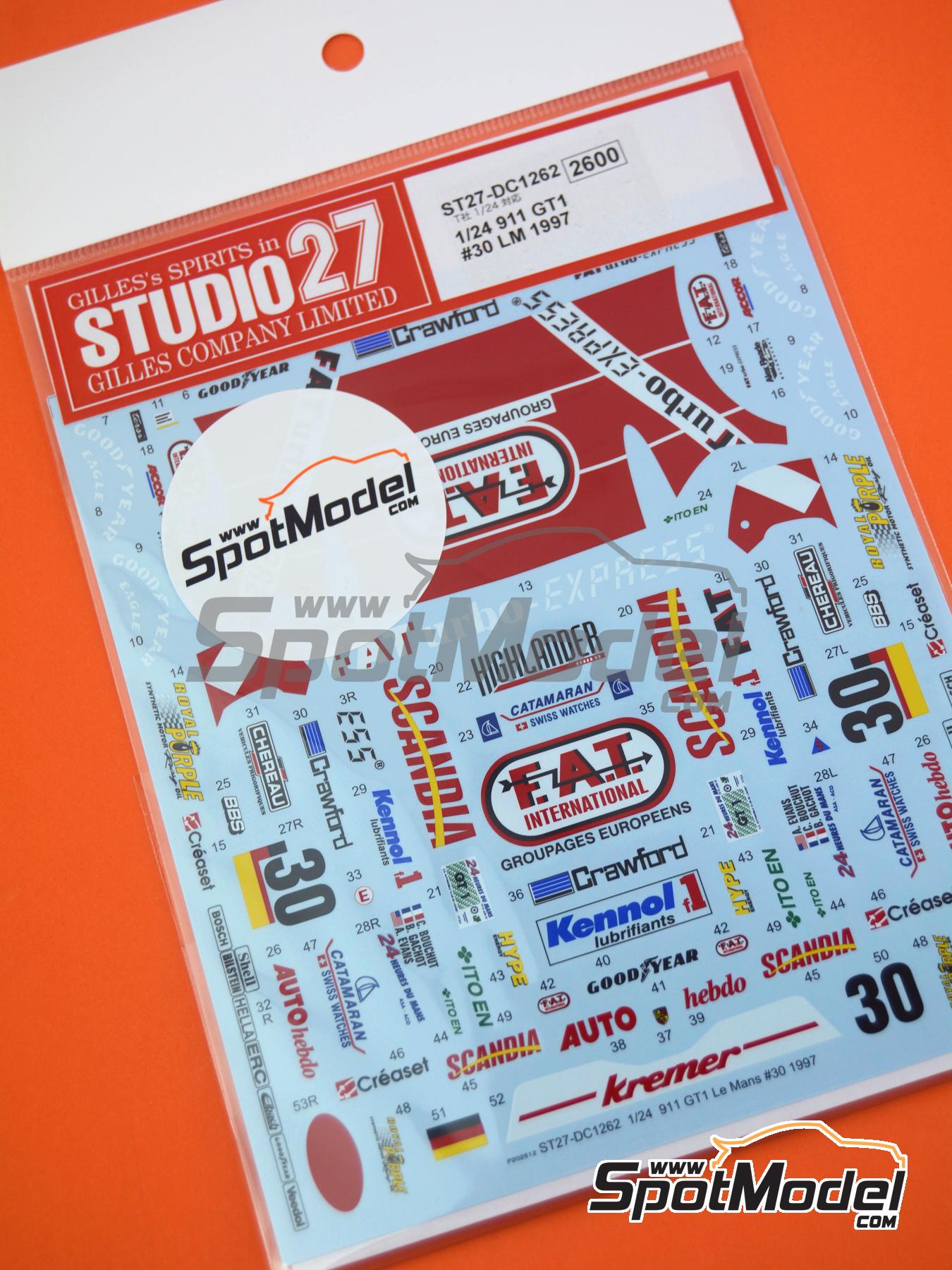 Sinceramente, nos alegramos mucho de que Studio27 se haya lanzando a desarrollar una nueva decoración para la maqueta de Tamiya del Porsche 911 GT1, un clásico que no pasa de moda. La decoración escogida es la de la unidad que el equipo Kremer puso en pista en las 24 Horas de Le Mans de 1997, y con un patrocinador muy vinculado a Porsche durante varios años, como es FATurbo-Express. El coche fue rápido en clasificación, pero no pudo acabar la carrera por problemas de temperatura.