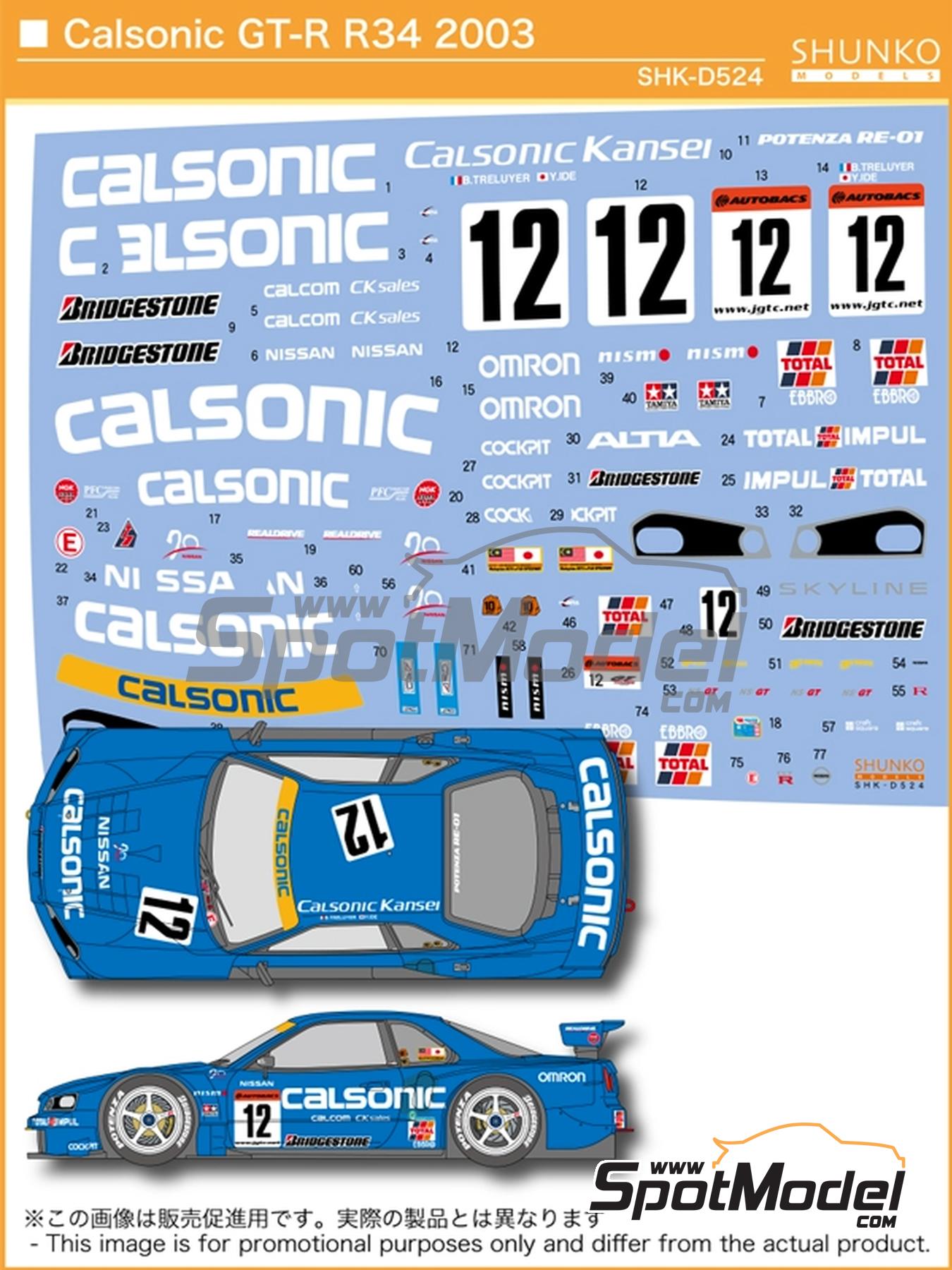 This new decal set allows you to directly replace the old decals on your 2003 Calsonic Impul Nissan Skyline GT-R (R34) scale model kit, but with some important changes. Firstly, the Tamiya kit allows you to reproduce the version used in the second round of the JGTC championship, held at Fuji, while this decal set also allows you to reproduce the versions used in the