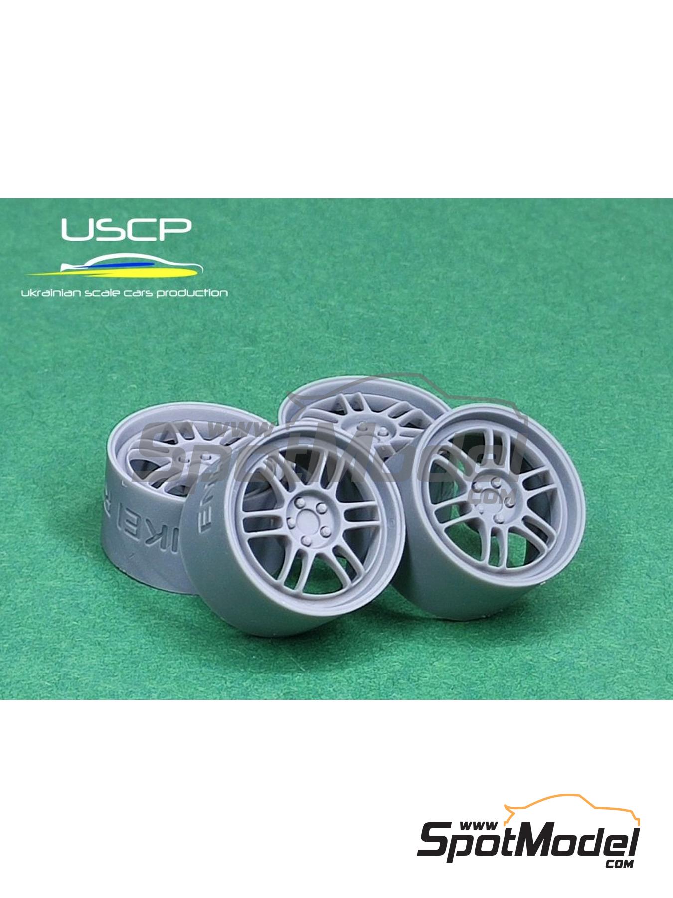 Juego de 4 llantas en resina impresas en 3D a escala 1/24 con un diseño similar al usado en las llantas de 17 pulgadas Enkei RPF1. Se incluye un juego de neumáticos de goma con dibujo. El set incluye también diferentes adaptadores, de forma que las ruedas puedan montarse en las maquetas de los fabricantes más habituales, como Tamiya, Hasegawa o Aoshima. En el soporte de los adaptadores también se incluyen las válvulas de aire de las llantas.