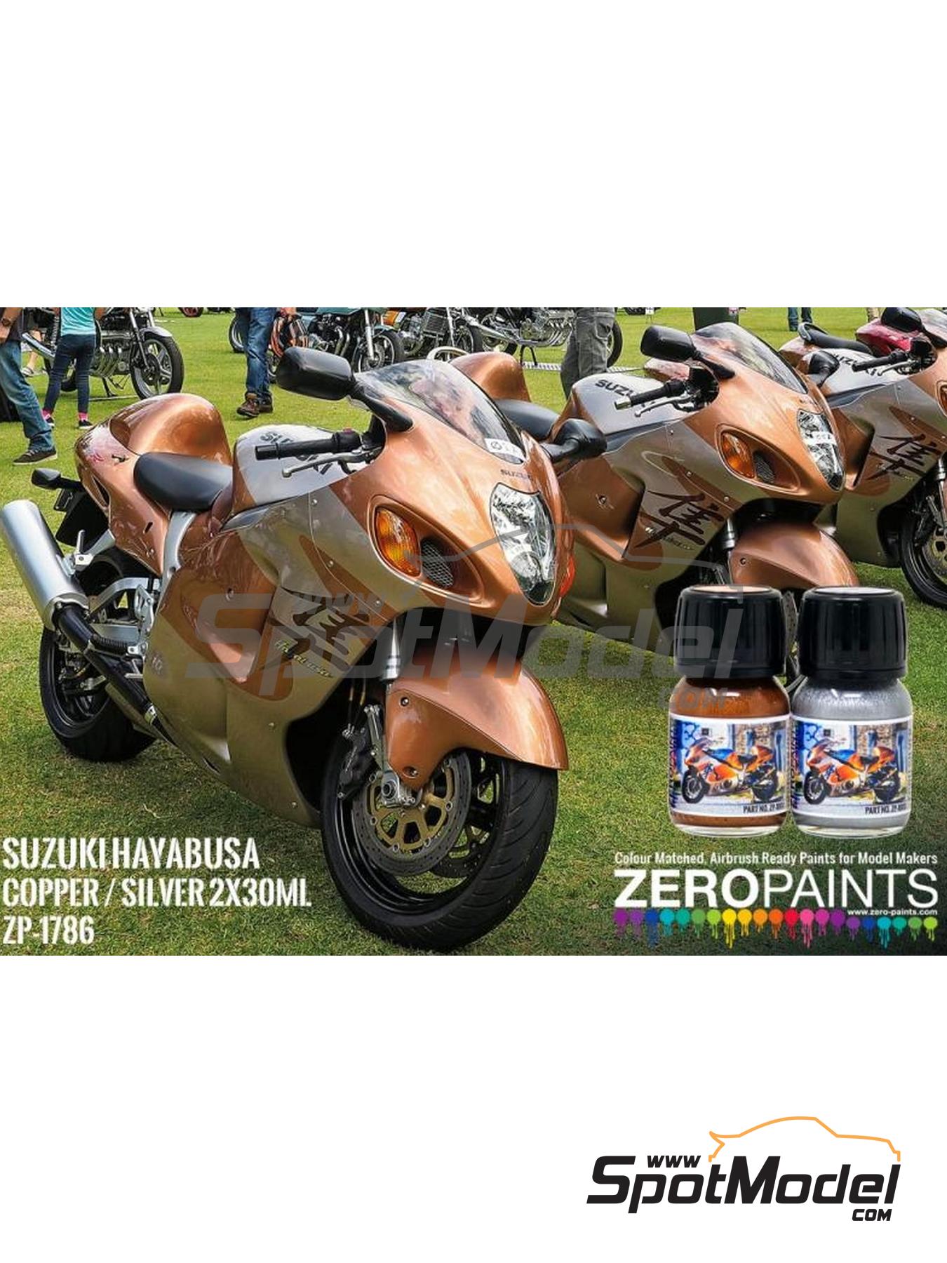 Set de pinturas para reproducir la llamativa combinación de colores cobre y plata de la Suzuki Hayabusa. El set se compone de dos botes de 30ml, para uso exclusivo con aerógrafo.